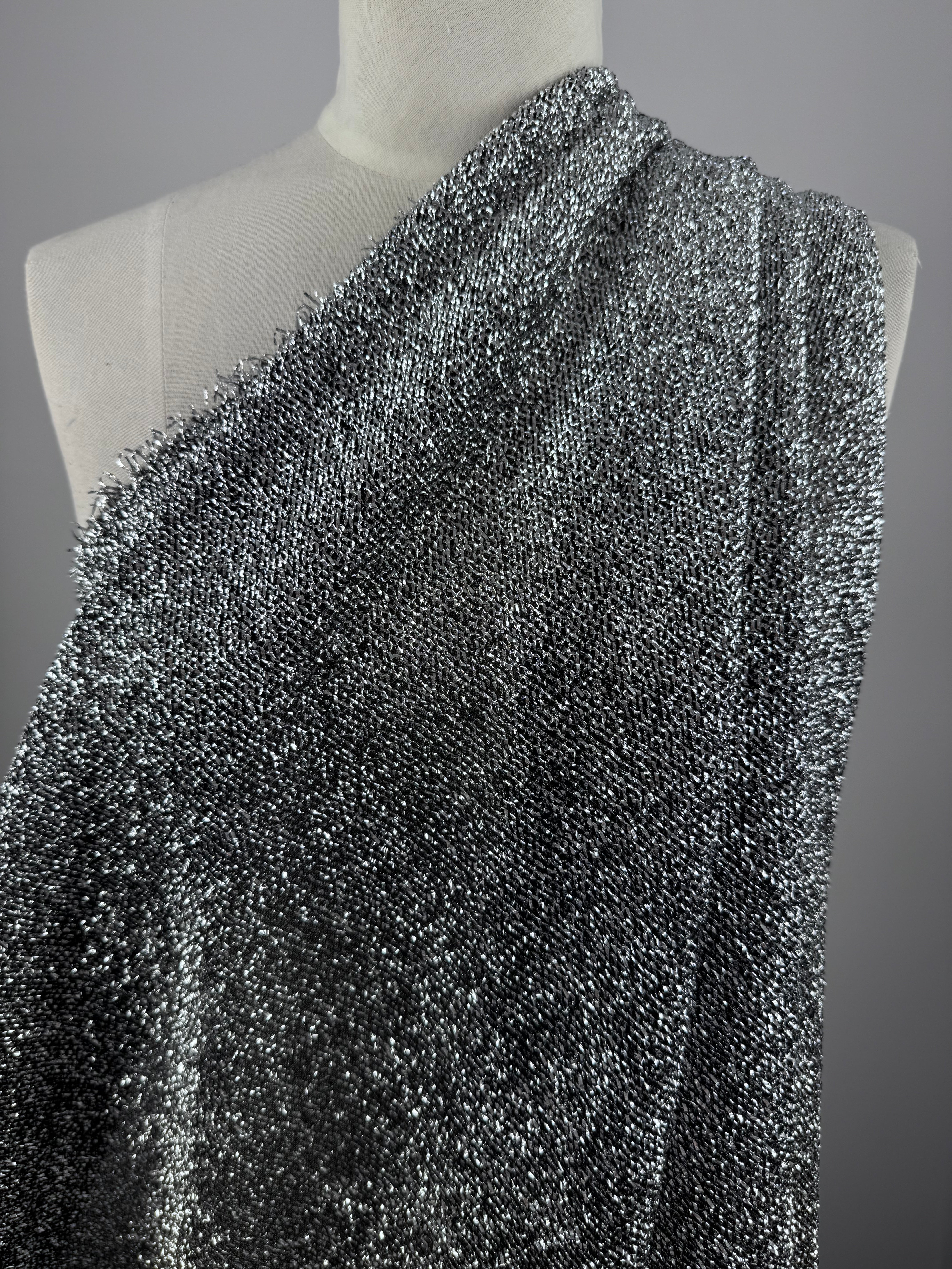 A soft, flexible Lurex Stretch Knit designed with a subtle shimmer and a comfortable stretch. This fabric drapes beautifully, offering a smooth feel with added elasticity that makes it easy to sew and flattering to wear. The knitted structure provides breathability while the metallic thread adds a touch of refinement, making it ideal for both casual and elevated looks. Versatile, durable, and perfect for garments or creative projects that need movement and a hint of shine.
