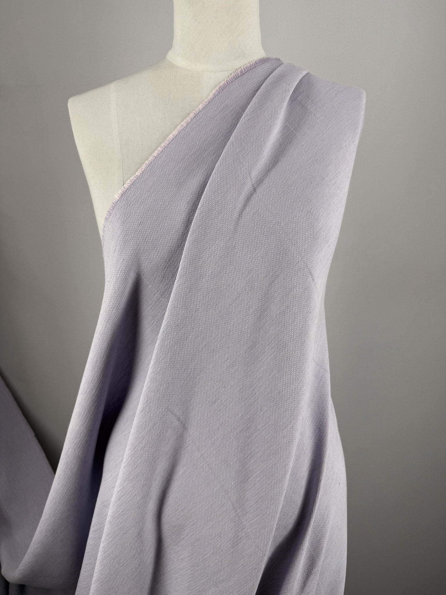 A soft lilac toned pure linen crepe fabric with a subtle matte texture.