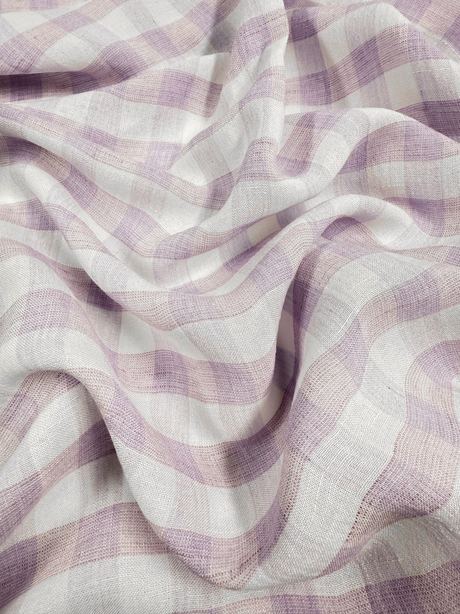 Pure Linen Voile - Lilac Gingham Check - 165cm